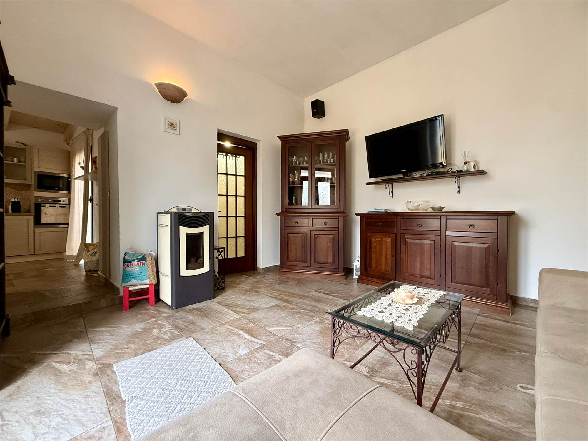 L'immobile è dotato di riscaldamento con stufa a pellet installata nel soggiorno e che contribuisce a creare un'atmosfera calda e accogliente durante i mesi più freddi. Inoltre, tutti i vani hanno la predisposizione per la climatizzazione estiva.